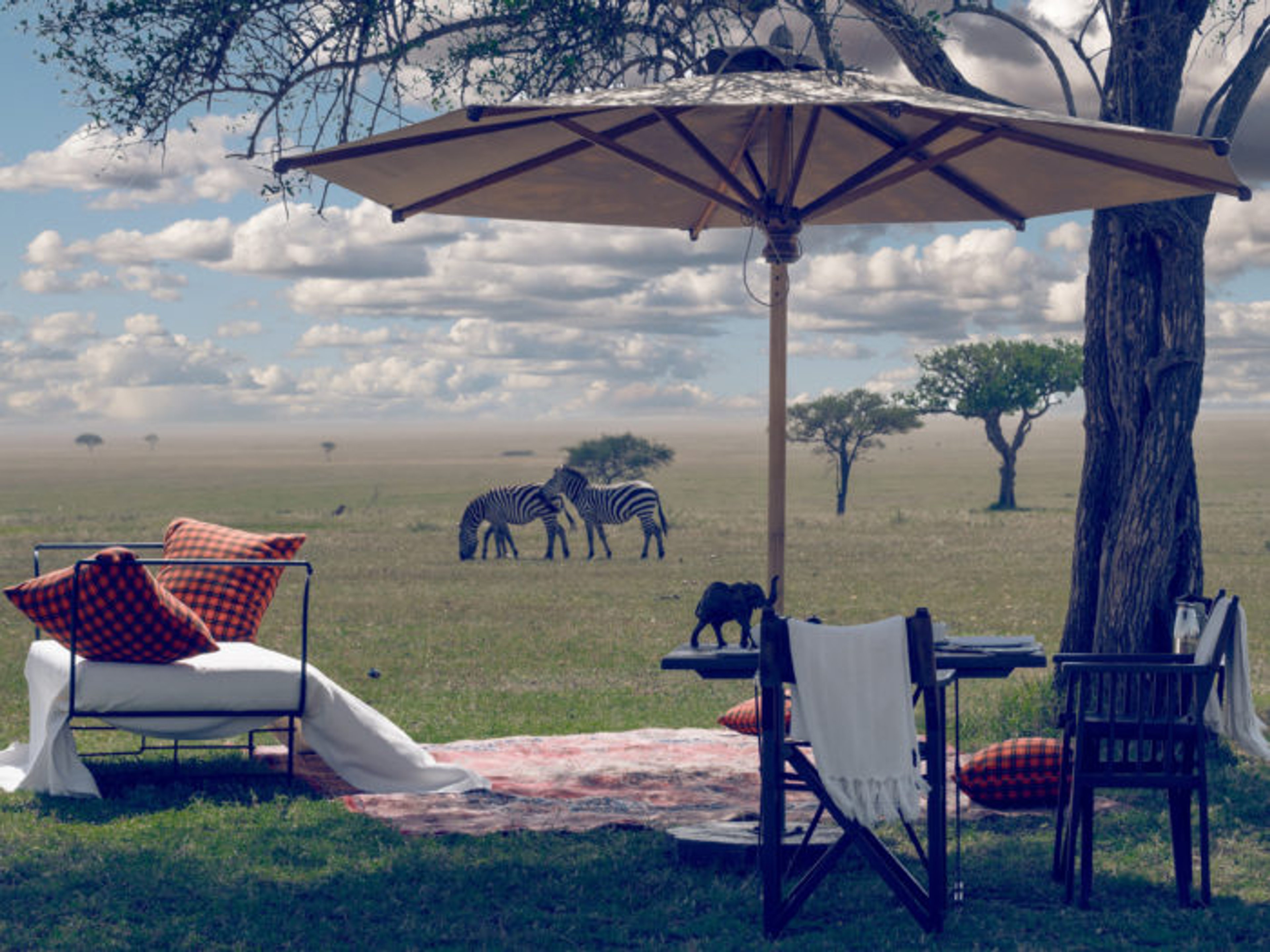We can think of no better vantage point from which to experience the great migration than Singita Sabora Tented Camp, a permanent under-canvas camp that evokes the opulence and romance of an old-world, safari-style hunting camp. Ample spaces offer a home-away-from-home experience that defies the concept of traditional camping at every turn. While Sabora’s location on the Grumeti plains offers incredible access to the Great Migration, we’d suggesting chartering a hot air balloon trip for an unforgettably romantic ride over the treetops of the Serengeti.
