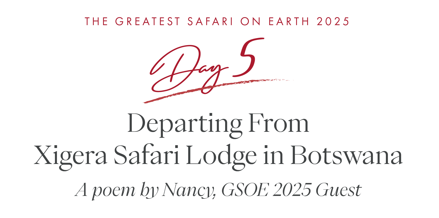 It is truly a privilege when our travelers put their experiences into words and Nancy’s poem, at the beginning of this newsletter, speaks to the very essence of The Greatest Safari on Earth℠: the connection with the “staff of spiritual warriors,” the love, the intangible magic of Africa and the way the continent imprints itself on your soul. These reflections speak to the heart of why we do what we do. To see our guests fall in love with Africa’s vastness, to watch people become lifelong friends and to know that the places, cultures and communities we hold so dear have touched them deeply.