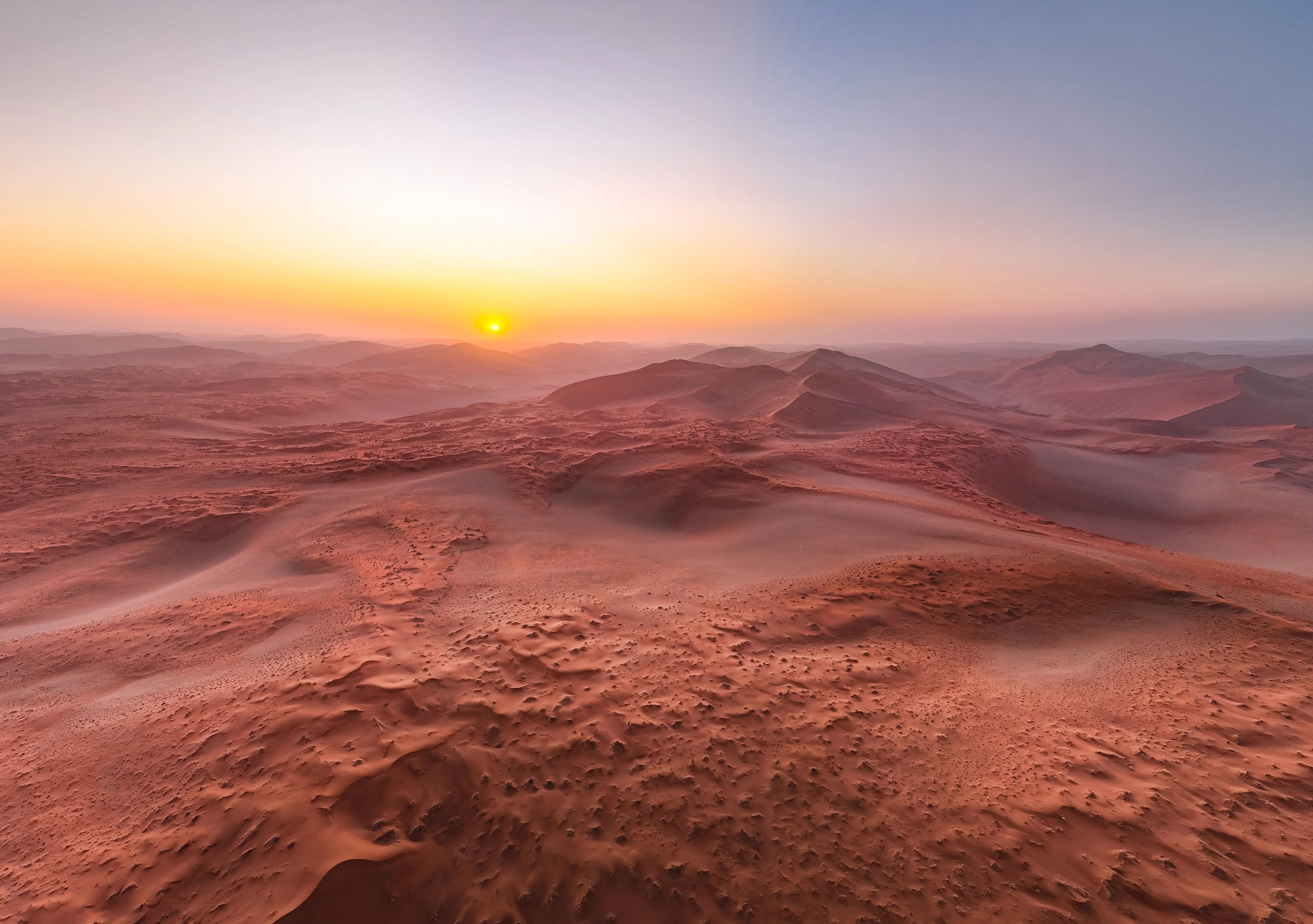Begin in Namibia, a landscape of vast red sands and fascinating desert-adapted fauna and flora, where the Namib Desert stretches toward the icy Atlantic along the dramatic Skeleton Coast.